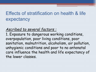 RATIONALE Social stratification is the structured ranking of groups in society in a hierarchical fashion. Economic level professional occupation income place of residence birth origin and access to wealth or lack of it. The basic argument of his paper is that the job of college professor is extremely.